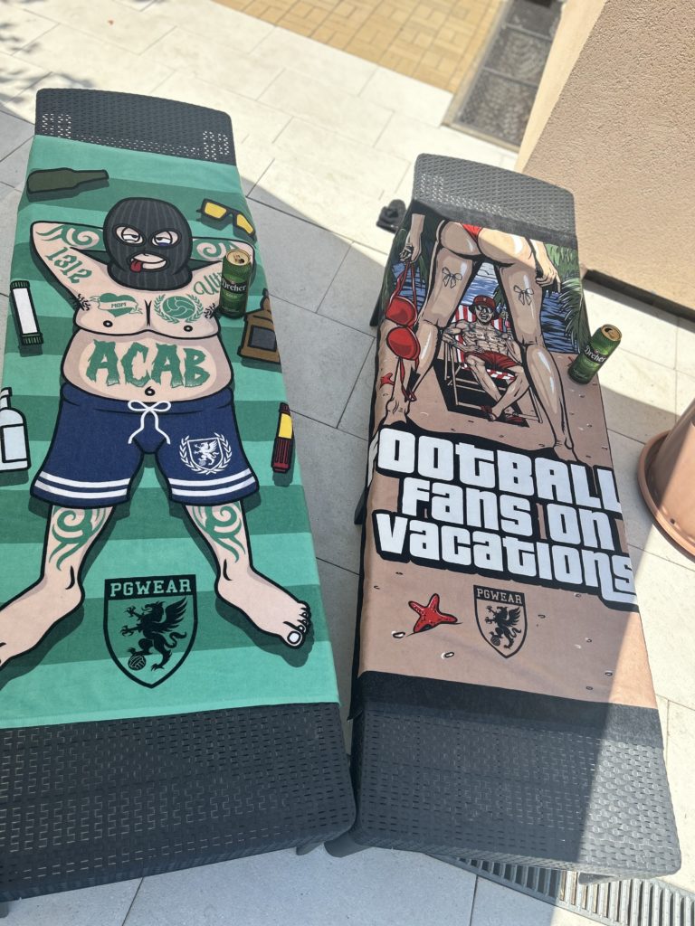 Urlaub im Ultras-Stil? Nur mit PGWEAR ist das möglich! Kreiere dein eigenes, einzigartiges Accessoire-Set für den Urlaub! Keine blöden hawaiianischen Blumen mehr – nur coole Sachen am Strand! Schnapp dir dieses Badetuchtuch und genieße! 😉
