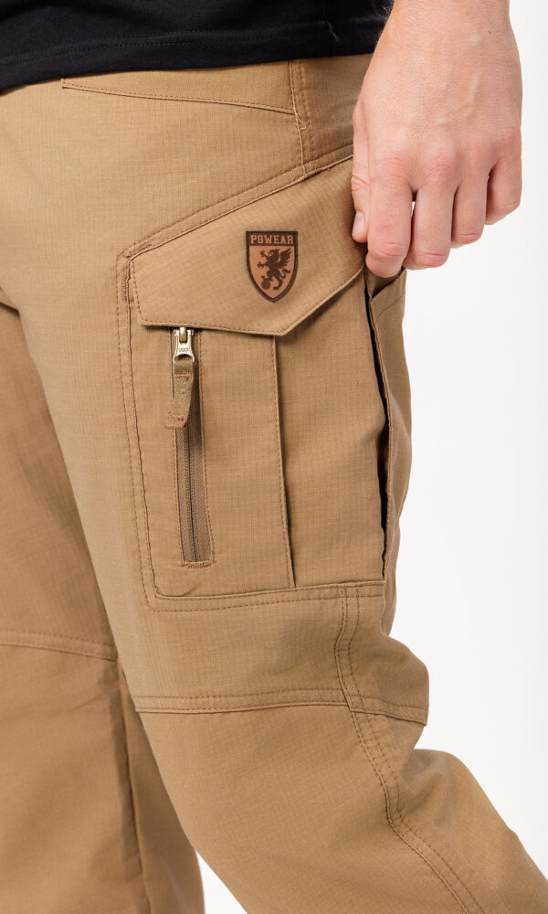| Andere Eigenschaften | innen PGWEAR Labeletikett, PGWEAR Lederpatch auf der Klappe der Seitentasche, vorne kurzer Reißverschluss und Kletterverschlüsse |