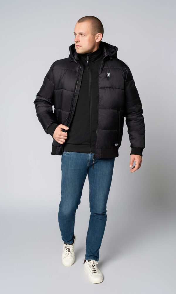 - Integrierte Sturmhaube im Kragen mit Reißverschluss befestigt