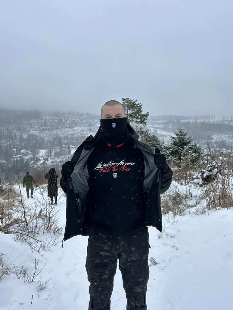 Der berühmte große und farbenfrohe Druck von PGWEAR? Eine Maske, die in die Kapuze eingenäht ist, um das Gesicht vor der Polizei und den CCTV-Kameras richtig abzudecken? Ein bekannter Slogan aus der Ultras-Welt? Najwyższej jakości bawełna? Hochwertige Baumwolle? Ja, alles in einem Produkt – der Kapuzenpullover No Justice – No Peace PGWEAR ULTRAS SHOP garantiert immer beste Qualität! Das Produkt wurde in Europa, in Polen von PGWEAR CUSTOMS hergestellt.
