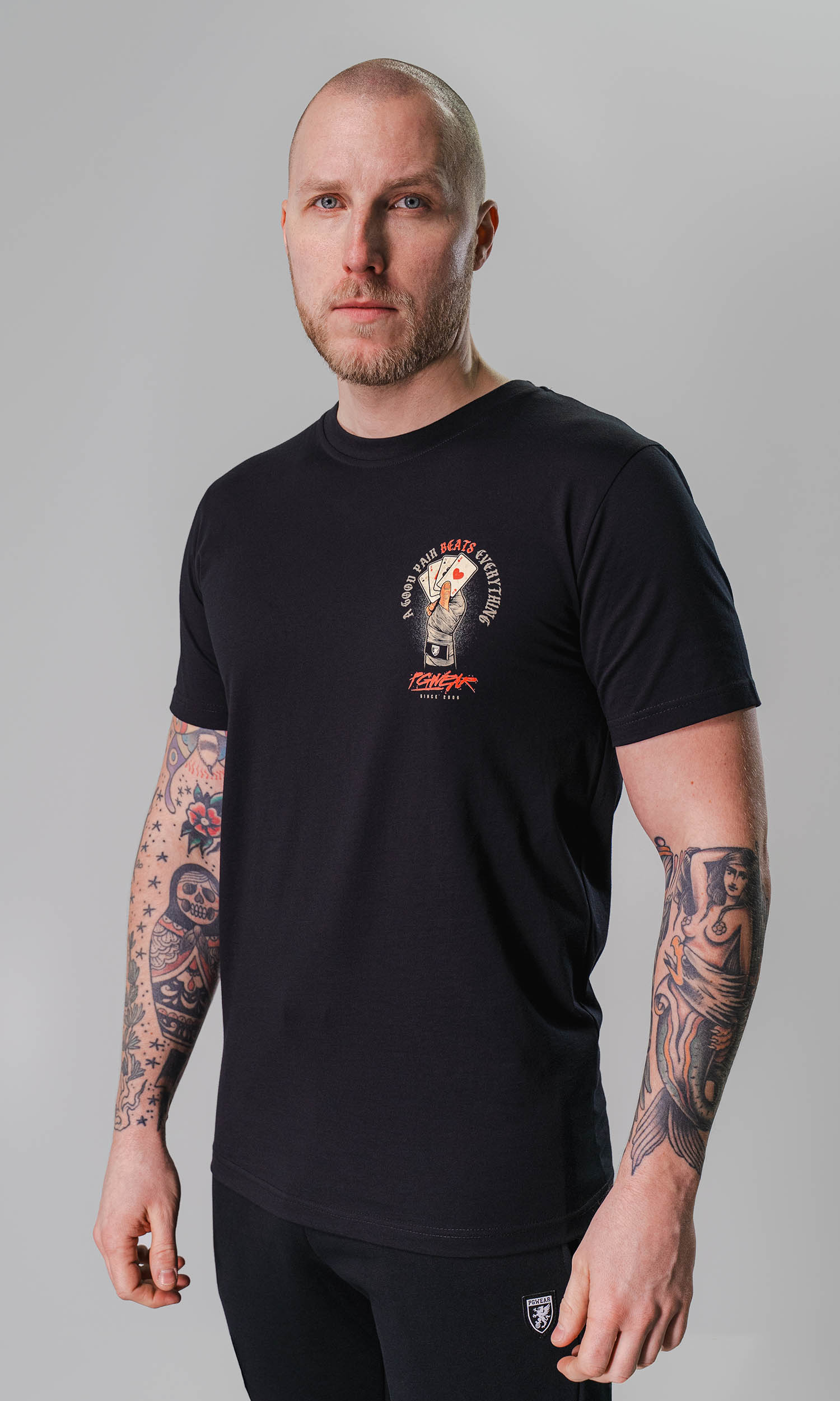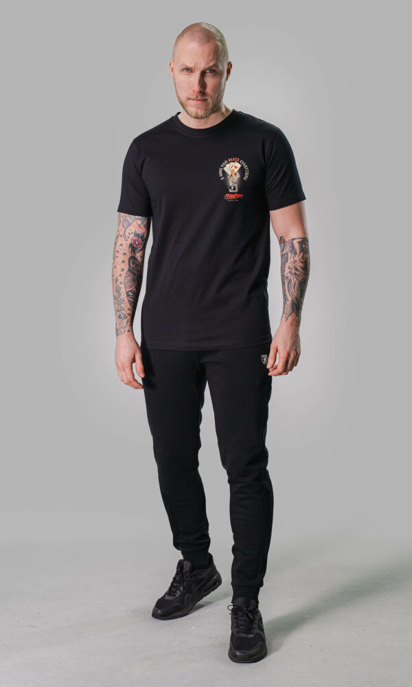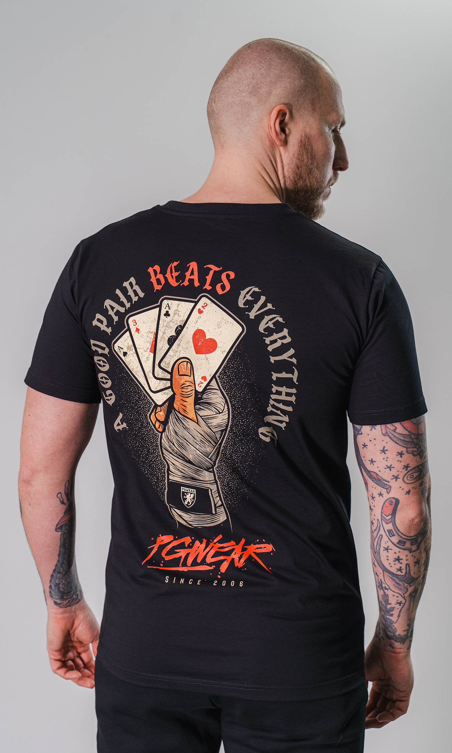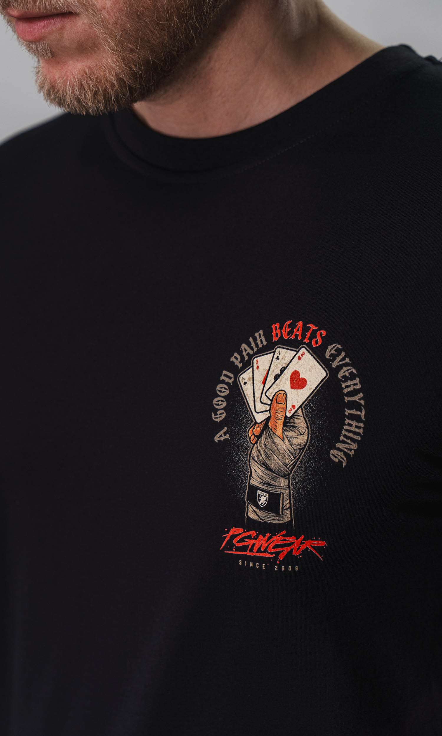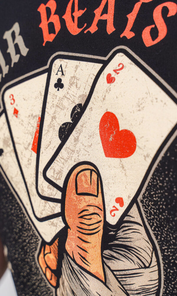 Aufdruck links auf der Brust, großer Rückenaufdruck