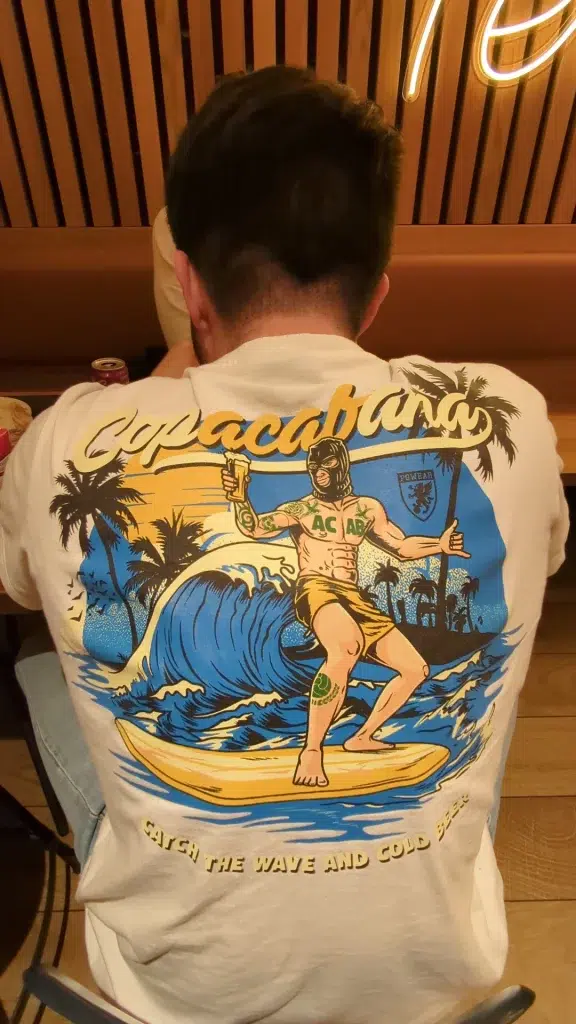 PGWEAR assoziiert den Sommer mit copACABana – einem imaginären Ort, an dem alle Träume von Ultras wahr werden! Goldener Sand, blaues Meer, jede Menge kühles Bier und leckere Cocktails, heiße Girls und keine Feinde – das ist der Ort, an dem wir unseren Urlaub verbringen wollen! Erlebe ein paar verrückte Wellen! Das Produkt ist in zwei Farben erhältlich!