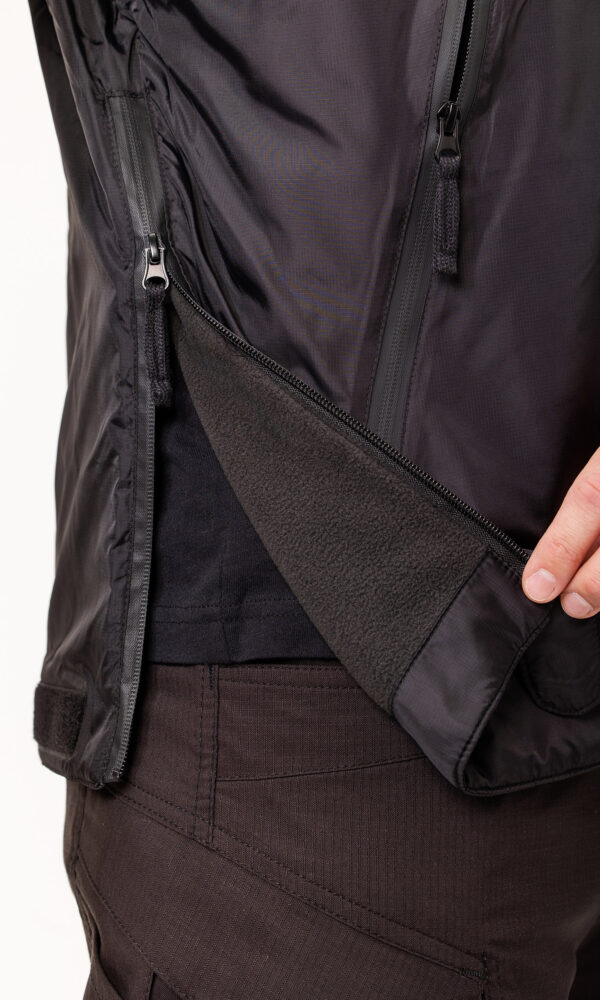 | Taschen | eine Brustasche mit Reißverschluss, versteckte Reißverschlusstasche, zwei Seitentaschen mit Reißverschluss |