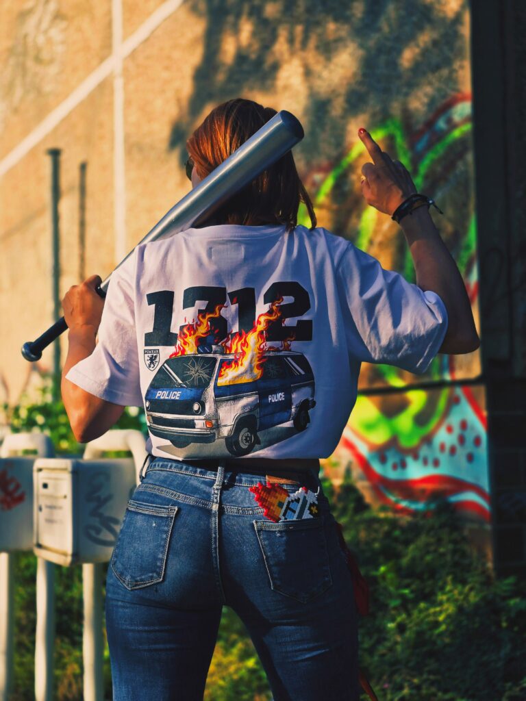 A view that will definitely ‘warm up’ the heart of every fan. A burning police car and our favourite numbers – 1312 will complete the outfit of every ultras! Both prints made by screen printing.