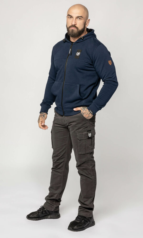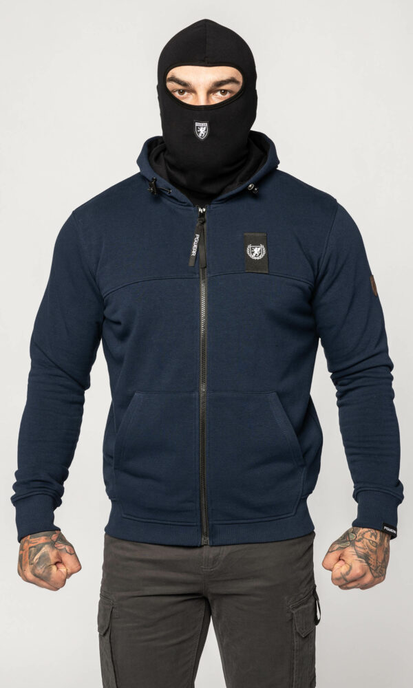 | Pozostałe cechy | kaptur regulowany gumosznurkiem, metka PGWEAR na lewym rękawie, skórzany patch PGWEAR na lewym ramieniu, taśma z nadrukiem z przodu, w karczku bluzy przypinana na zamek kominiarka, w karczku metka PGWEAR, z przodu długi zamek, żakardowa przywieszka do zamka, żakardowy patch PGWEAR na kominiarce |